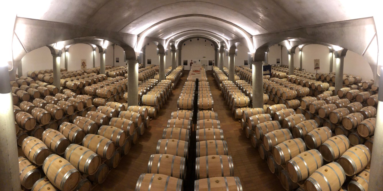 Ci affacciamo poi in quella che è senza dubbio la parte più scenografica della cantina. Una barriccaia sottorranea immensa, realizzata nel 2007 dove riposano tutti i vini principali che ovviamente fanno un periodo di affinamento in legno.