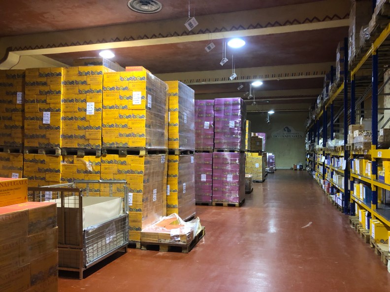 Passiamo poi nella zona di fermentazione dove sono ben disposte enormi vasche di cemento e di acciaio. Gli spazi della cantina sono impressionanti ed anche la parte di stoccaggio non scherza. Alcune sale sono addirittura refrigerate e tenute a temperatura costante con le bottiglie pronte a partire per gli oltre 60 marcati mondiali.