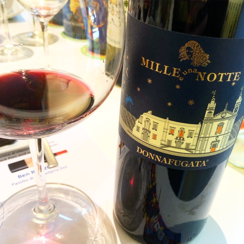 Boom! Boom! La chiusura, anche se poi non sarà così, è di quelle con il botto! Questo vino, icona di Donnafugata, nasce dall’idea dei fondatori dell’azienda, Giacomo e Gabriella e dal supporto di Giacomo Tachis. L’etichetta è un’intuizione di Gabriella che utilizza il Palazzo Filangeri di Cutò, rifugio della regina Maria Carolina in fuga da Napoli, casa tanto amata da Tomasi di Lampedusa, incastonandole in un cielo da Mille e Una Notte.