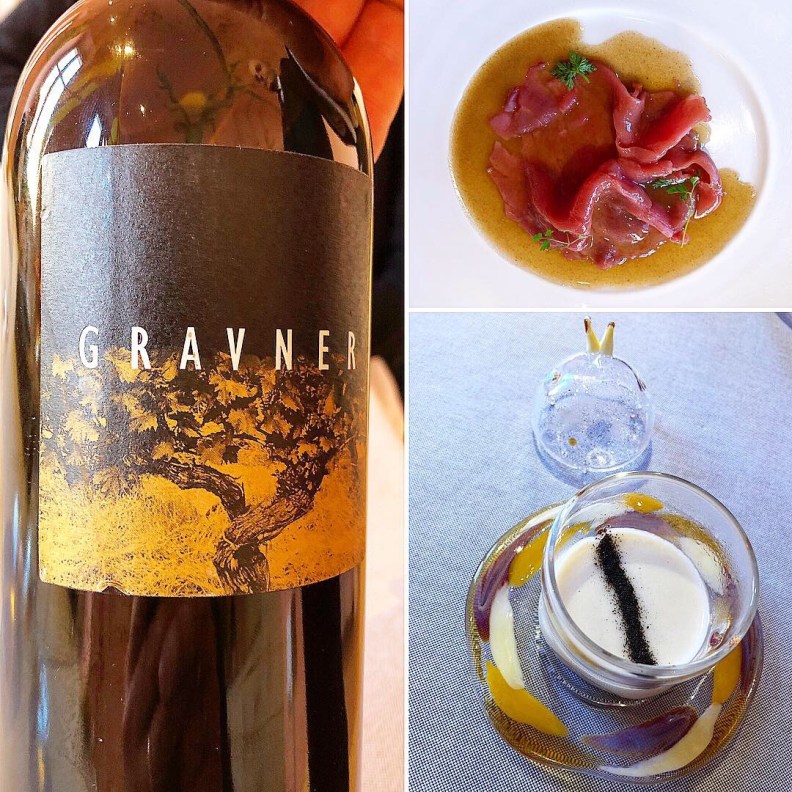 Come si sarà comportata la Ribolla di Gravner? Alla grande in entrambi casi: grande duttilità, persistenza e concentrazione che permettono di reggere sia al ristretto della fassona (davvero intenso) sia alla cremosità ed eleganza della crema. Un vino epico servito nel pieno della sua maturità dotato di infinite sfumature che proseguono in un tempo interminabile anche sul finale: erbe aromatiche, salvia, origano, frutta matura come la pesca e l’albicocca quasi caramellata, miele, cera d’api, potrei fare un’elenco infinito!