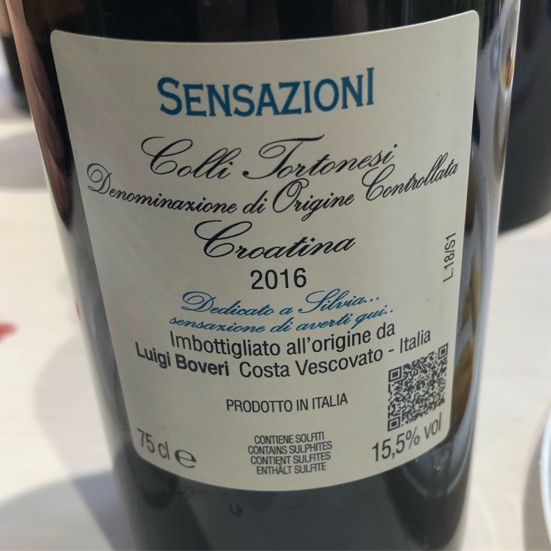 Passiamo poi ad una Croatina in purezza: Il Sensazioni.