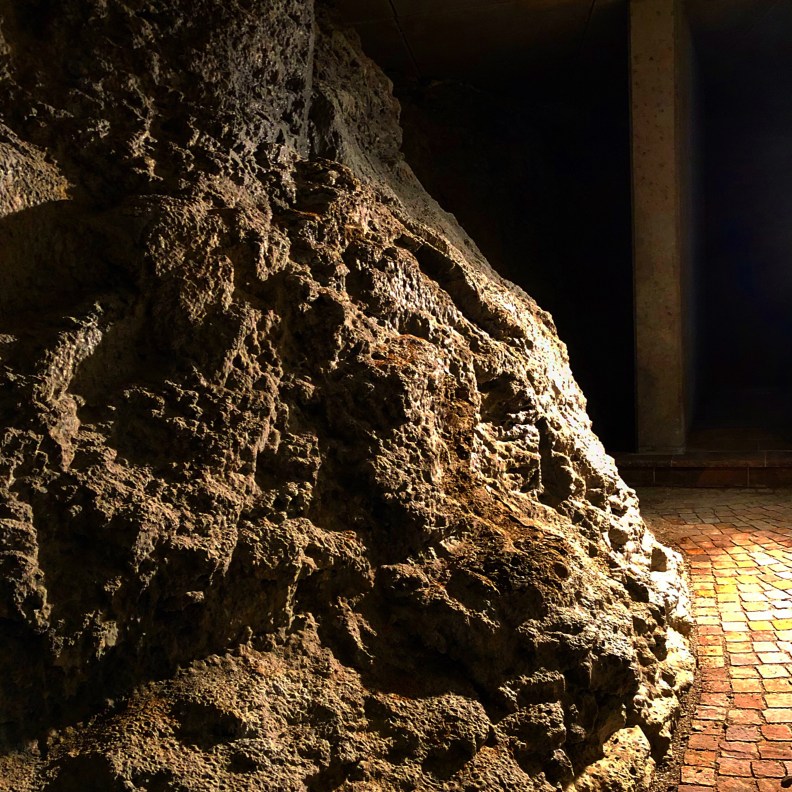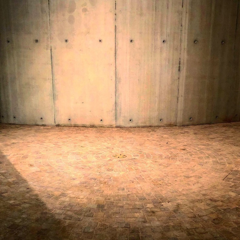 Nonostante un panorama da urlo del quale si può godere dall’alto della cantina la scelta della sua ubicazione è ben diversa, anticonformista direi. La sala sarà posta al centro del piano mediano: a terra il porfido con sfumature che ricordano la Ponca, nessuna finestra. Un ambiente intimo dove la cosa principale dovrà essere solo e soltanto il vino, nessuna distrazione esterna, un santuario dove degustare e meditare.