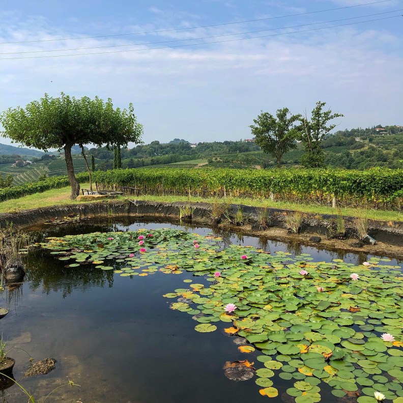 “Biodiversità”, parola usata spesso impropriamente che qui trova una spiegazione ed un senso: olivi, numerose tipologie di ciliegi, cipressi (fondamentali barriere naturali per i forti venti), meli, ornielli, peri, diventano riparo per molti animali e ospitano più di 200 nidi artificiali per molte varietà di uccelli. Sfatiamo anche il mito che gli uccelli mangiano i chicchi d’uva: lo fanno per carenza idrica ma qui ci sono gli stagni dove possono abbeverarsi ed inoltre la Ribolla con la sua buccia molto spessa non è per loro troppo appetibile.