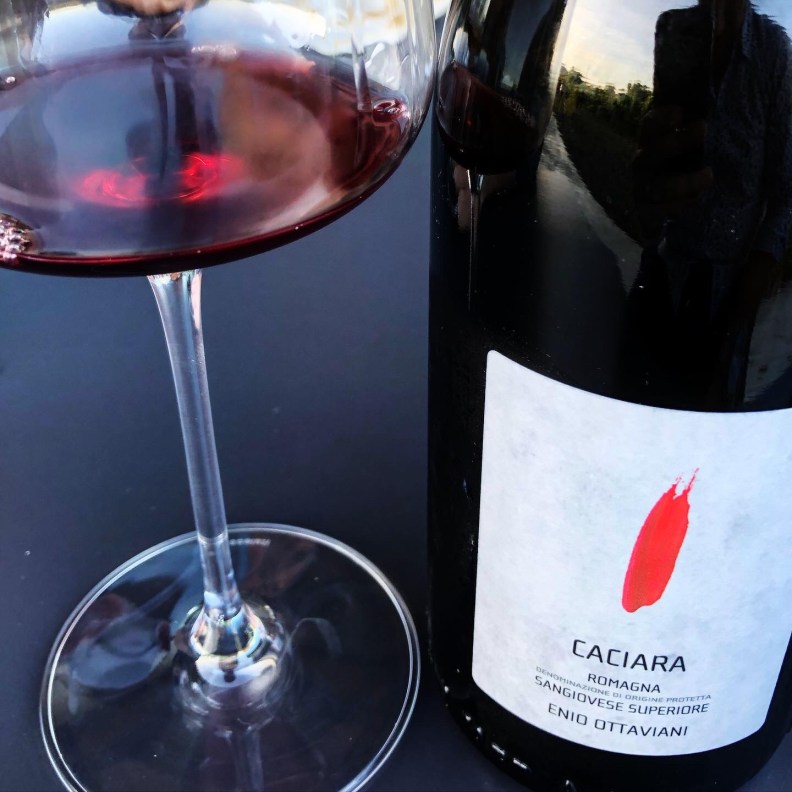 Per me il vino che più rispecchia la filosofia aziendale, le persone ed il territorio della Romagna. “Caciara” già il nome ci racconta di un allegra confusione, di un pranzo o di una cena tra amici, di una convivialità che ritroviamo in questo bicchiere e che è non solo la causa ma il veicolo della felicità. Un vino che definirei divertente ed eclettico: da bere fresco come aperitivo, da abbinare ad una bella lasagna e ancor meglio ad una grigliata di carne (cosa che tra l’altro abbiamo fatto!). Rosso rubino brillante e luminoso, al naso regala una spruzzata di frutta fresca, ciliegie, frutti di bosco, leggere note di spezie. La beva è incredibile: equilibrata, piacevole. Un bicchiere tira l’altro, brindando iniziano le chiacchiere che dopo un po’ si trasformano in “caciara”.