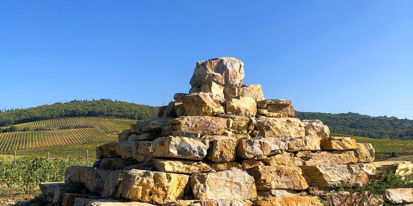 Non siamo a Saqqara e nemmeno a Chichen Itza e credo di poter affermare con quasi totale sicurezza che questo è l’unico caso che possiamo trovare in Italia. La Piramide è stata costruita utilizzando i sassi ritrovati nel vigneto, terreni ricchissimi di alberese, galestro e macigno. Questo non è soltanto il punto da dove inizierà la nostra visita ma un vero e proprio simbolo della filosofia aziendale: una base solida dalla quale puntare sempre più in alto.