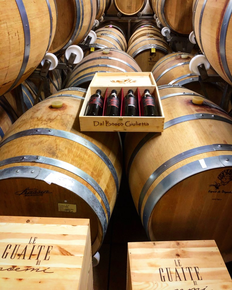 Ad accogliermi in azienda è proprio Noemi, classe 1994, la più giovane donna del vino d’Italia. Mi trovo davanti una ragazza a cui l’età anagrafica non rende merito, nel senso che si capisce fin da subito quanto grande sia la sua passione e quanto sia forte la sua personalità. Una ragazza che da sempre respira vino, tant’è che mi racconta della sua prima vendemmia fatta all’età di 8 anni e di cui ricorda ancora i colori, i profumi e la sensazione di pace e silenzio che aleggiava nella barriccaia. Da quando aveva 17 anni lavora in cantina assieme alla famiglia, iniziando così un percorso che in poco tempo la porta a prenderne le redini in prima persona. Il suo progetto nasce così nel 2015 spinta dalla volontà di mettersi in linea con un mercato in continuo cambiamento e trova il completo appoggio della sua famiglia. Da lì in avanti i cambiamenti sono molti: nuova veste grafica delle etichette (Premio Packaging al Vinitaly) con rimandi all’arte contemporanea ed in particolare al surrealismo, utilizzo della comunicazione social e maggiore attenzione alla comunicazione in generale. Si affianca ad esperti di agronomia ed enologia attuando una svolta biologica della gestione delle vigne, il tutto mettendoci non solo la faccia ma anche il proprio nome all’interno del marchio aziendale. E’ così che in pochi anni Le Guaite di Noemi si affermano sul panorama nazionale ed internazionale.