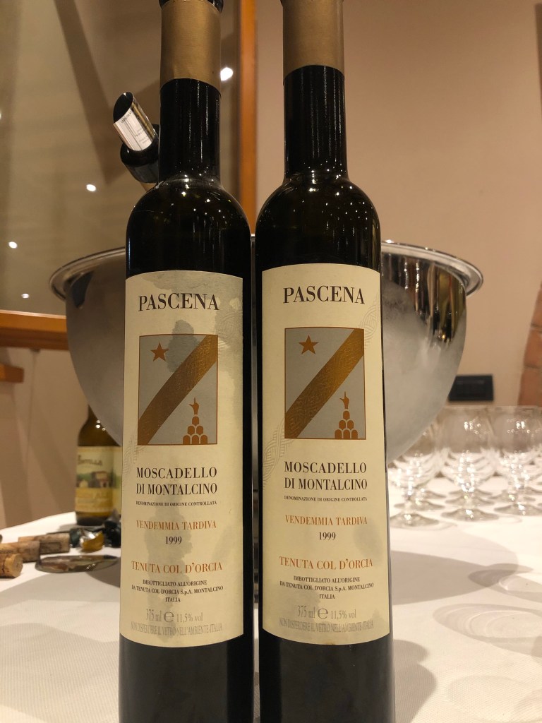 Dimenticavo: alla verticale Γ¨ seguita una splendida cena dove sono state servite una Jeroboam di Rosso di Montalcino 2011 (strepitoso!) ed un commovente Moscadello di Montalcino “Pascena” 1999.