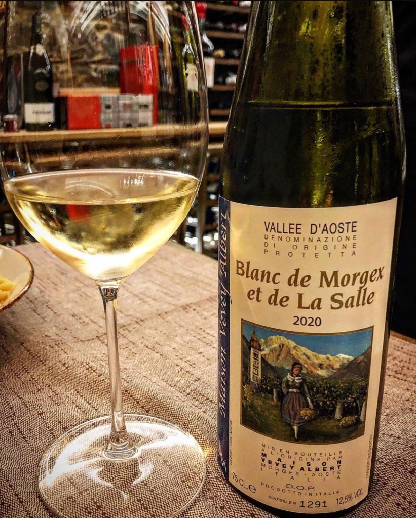 Abbinamento: Maison Vevey Albert Blanc de Morgex et de la Salle 2020. 100% Prié Blanc. Dai più alti vigneti d’Europa ai piedi del Monte Bianco, a piede franco, con una produzione annua totale di sole 7K bottiglie. Una vera chicca che grazie alla sua freschezza riesce ad adattarsi ai sapori intensi ma delicati degli gnocchi.