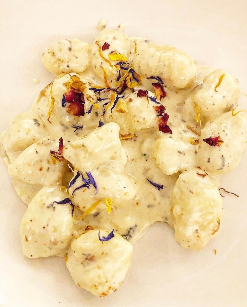 Passiamo poi agli Gnocchi Erborinati fatti con patate di montagna, Bleu d’Aoste e noci: una delizia.