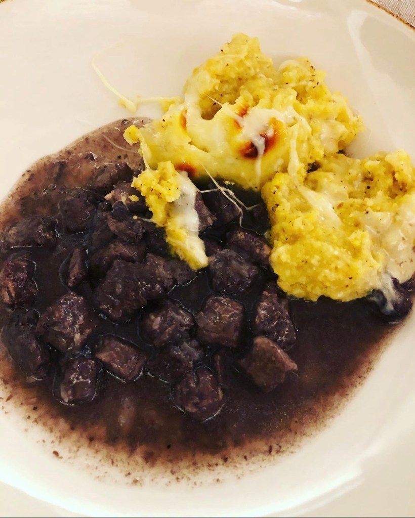 Terminiamo le portate principali con la “Carbonada”, uno spezzatino di vitello insaporito con ginepro e chiodi di garofano, cotto nel vino rosso e accompagnato da una meravigliosa polenta sette grani.