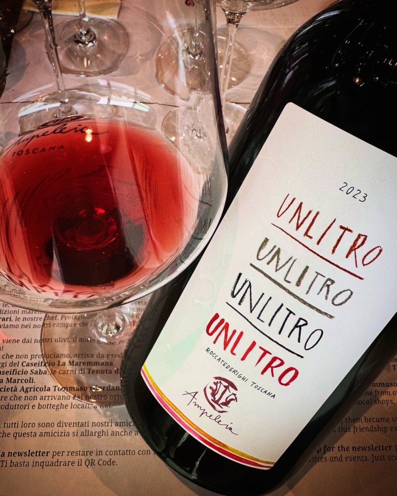“Volevamo dare dignità e carattere al rosato”. L’ultimo arrivato in casa Ampeleia è un rosato che definirei “serio”, un vino che nasce in vigna e viene esaltato dai processi di cantina. Tanto fa l’infusione, gentile e non invadente (i grappoli interi utilizzati non sono utilizzati ma vanno poi in pressa per Unlitro),
